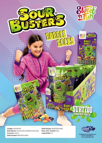 COOL/SOUR BUSTERS BUBBLE ROCKS 12 UND. C/12
